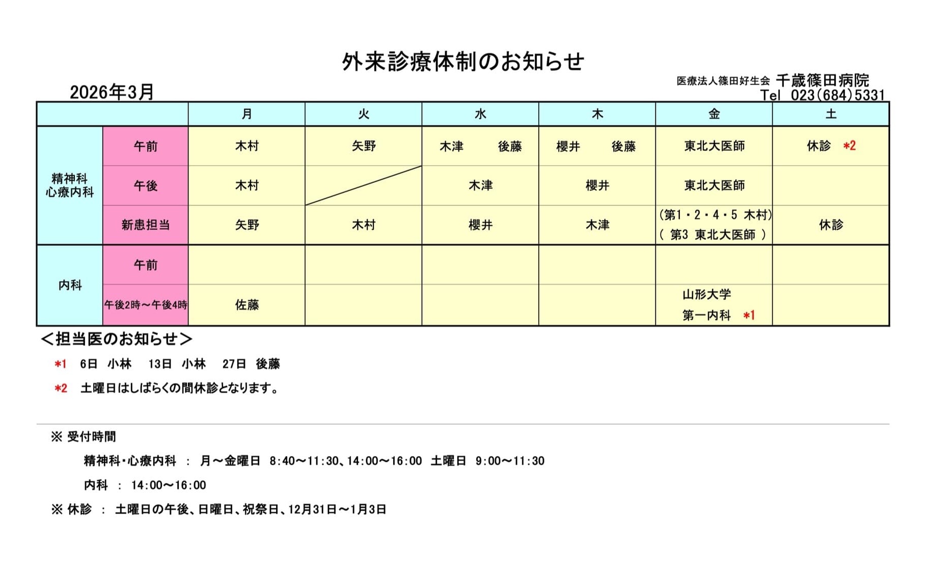 ※土曜日は当分の間休診になります。
